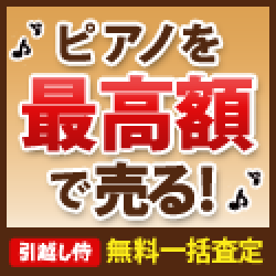 ● | ピアノの価値は素人ではわからないのでオークションでは心配。運ぶのが難しいので専門店や専門業者が安心。そしてできるだけ高く買い取ってもらいたい!そこでうれしいのは複数のピアノ買い取り専門店の一括査定サイトです。見積もり無料なので一括査定してもらい、最も条件のよいピアノ買取店に買い取ってもらいましょう! |